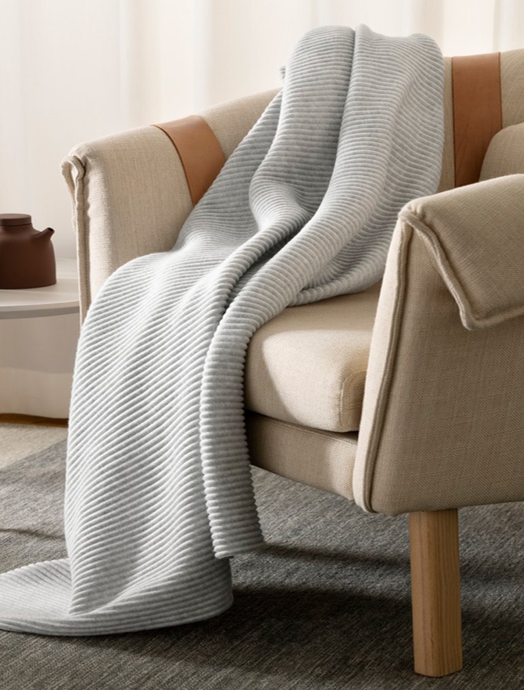 精選棉緞、牛津紡、歐洲亞麻、初剪羊毛等面料,運用於極簡寢具設計。