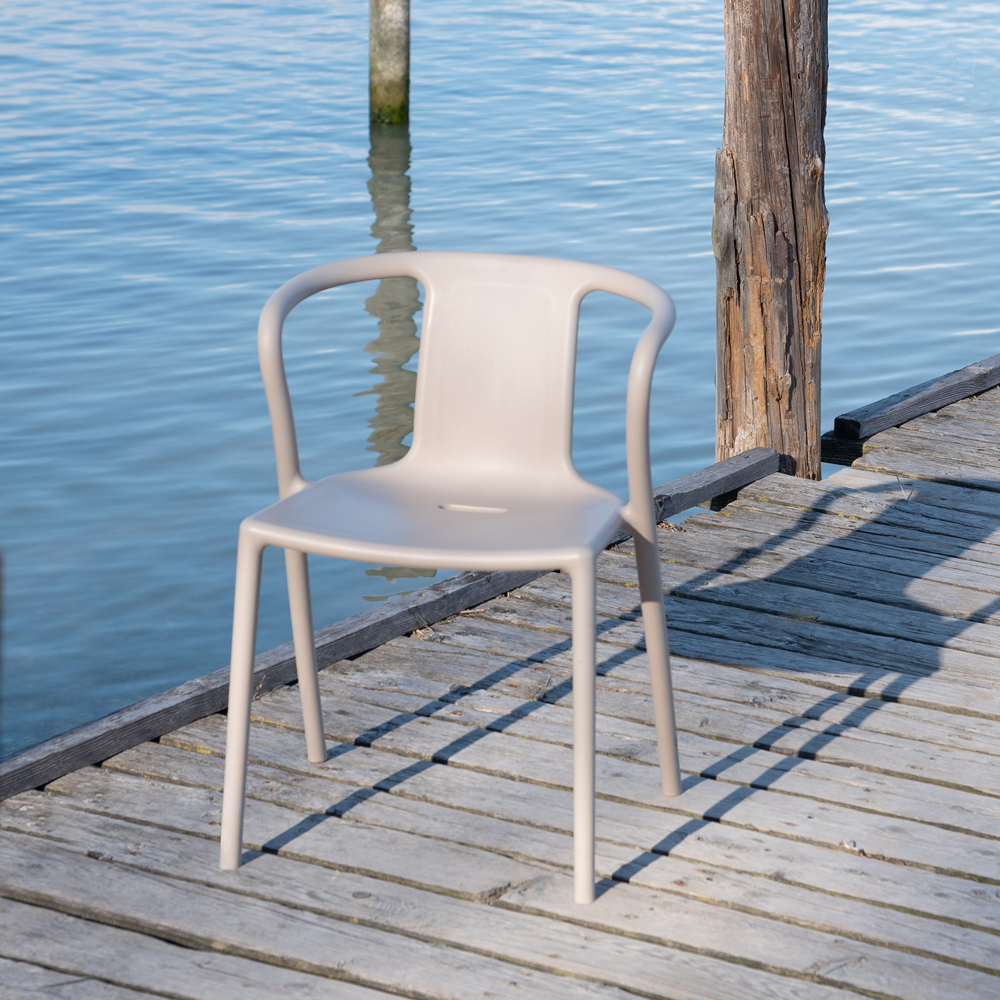 一百週年紀念版,椅身前後以不同深淺藍色交織而成,為鮮明造型增添色彩層次。