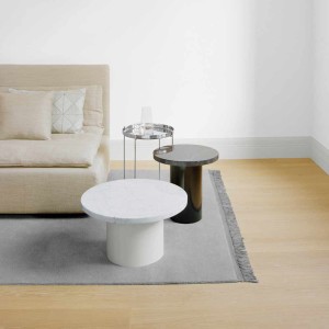 Enoki 蕈菇大理石邊桌(40cm、白桌白腳) -