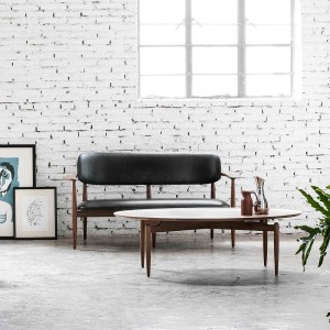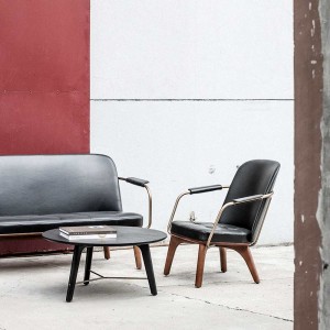 Utility 雙人沙發(深棕橡木、黑皮革)