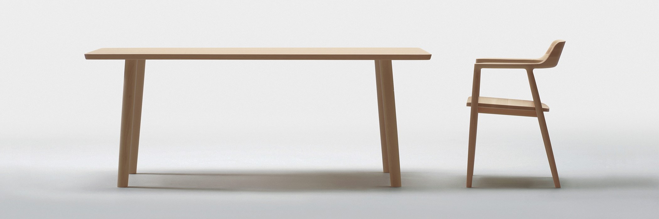 「工藝品工業化」是 Maruni 一直以來的品牌精神,自 1928 年成立於廣島後,創造許多高品質的木製家具。「昭和曲木工廠」為 Maruni 的前身,創辦者山中武夫先生開發的精密曲木技術與工藝精緻量化思維,成為日本木材工業的技術先趨,成功地將工藝品中的繁複技法運用於工業製品上,奠定了 Maruni 在日本家具業屹立不搖的品牌地位。以強調無須思考「without thought」,憑直覺使用極簡設計風格聞名的日本工業設計大師深澤直人,去繁為簡的設計概念與 Maruni 一拍即合,2008 年開始即有一系列的合作,其中包含 HIROSHIMA 與 TRADITIONAL 兩個經典系列。