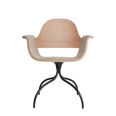 Showtime 高背旋轉扶手椅(自然、天鵝絨坐墊、固定椅腳) -