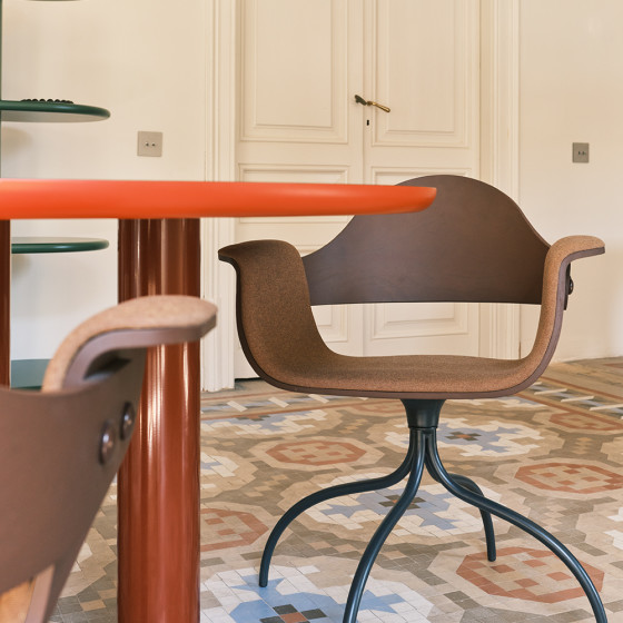 全新《Showtime Chair》旋轉扶手椅,則以更臻成熟的設計語彙呈現,結構簡潔、材質精緻,坐感舒適耐久,適合長時間使用。整體以山毛櫸木打造,搭配高雅色系坐墊,流暢的四爪椅腳增添造型感,展現多樣美學應用的可能。無論置放於居家、商業或辦公空間皆宜,其重新詮釋了經典之美,每一次入座,都能感受到優雅與趣味的完美結合。
