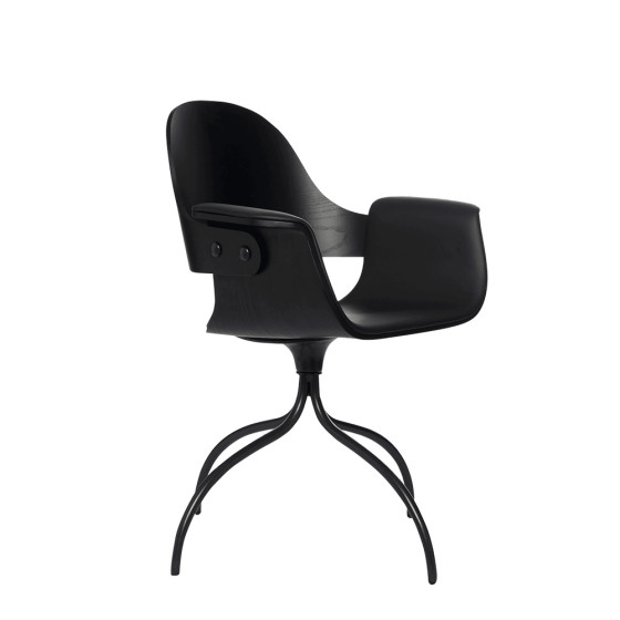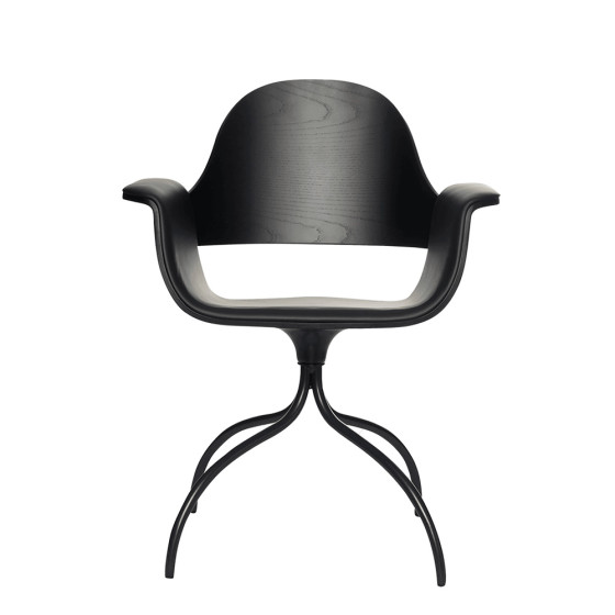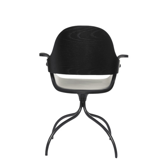 Showtime 高背旋轉扶手椅(黑、皮革坐墊、固定椅腳)