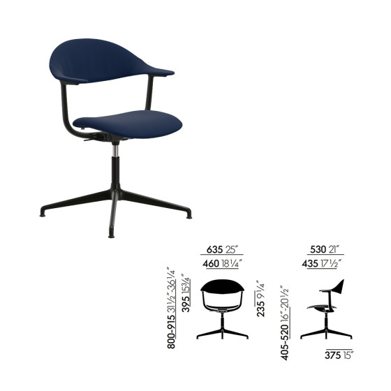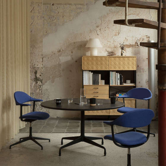 Showtime 低背旋轉扶手椅(藍、織布坐墊、滾輪椅腳) -