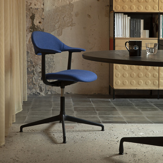 Showtime 低背旋轉扶手椅(藍、織布坐墊、滾輪椅腳) -
