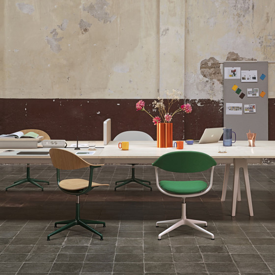 《Mynt》打破傳統分類框架,揉合居家溫潤質感及簡約美學,並結合動態椅的專業人體工學設計,是一款橫跨辦公與生活的全能座椅;它為各式空間帶來嶄新乘坐體驗,能靈活應對工作室或公共空間,其低調優雅的外型,更替餐桌增添一抹迷人風采。