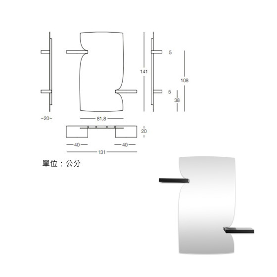 材質:鏡面玻璃、梣木