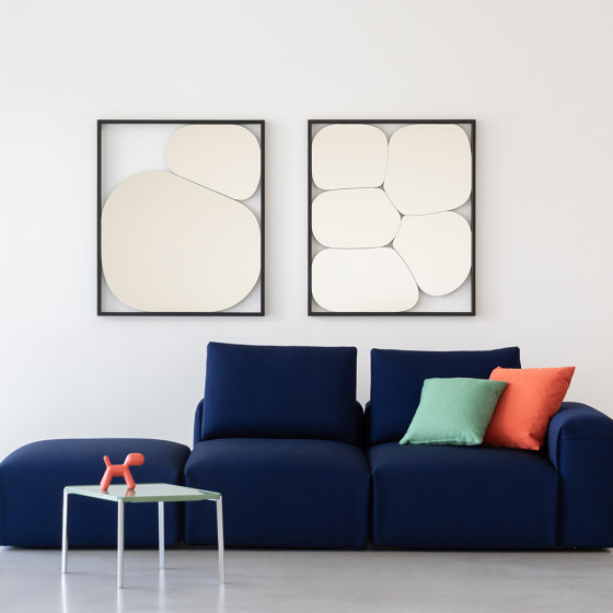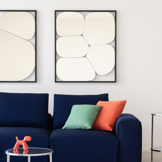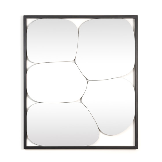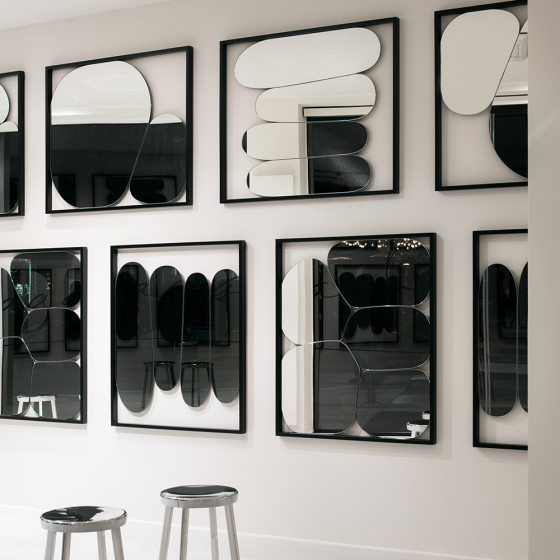 《Morphed Mirror》系列正是這個探索的回應,沒有繁複結構,也不倚賴雕塑般的厚重,而是以最純粹、最簡潔的姿態,將柔軟的形體,凝固於平面與立體之間。有人看見擁抱的弧度、有人看見波浪的推進,也有人看見父母輕扣住孩子臂彎的溫柔,它不僅映照身影,更映照記憶與感受;搭配黑色金屬框收束力量,這件作品就像一個被定格的瞬間,看似靜止,卻在你靠近時,開始呼吸流動。
