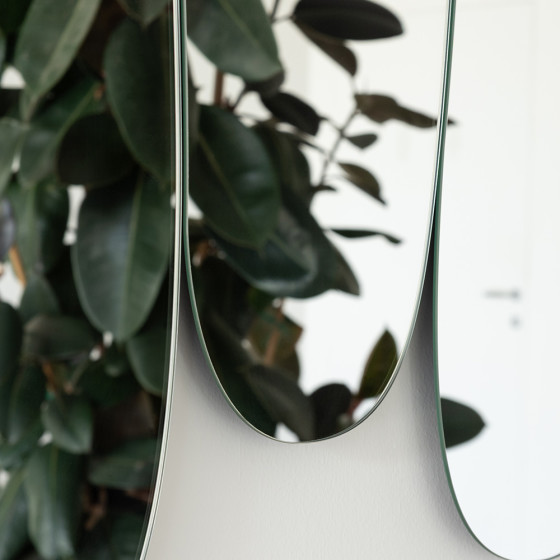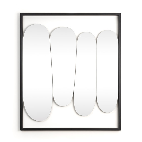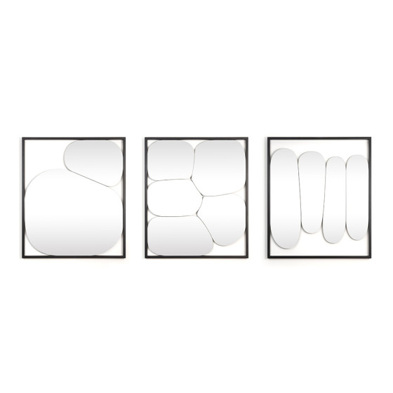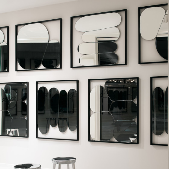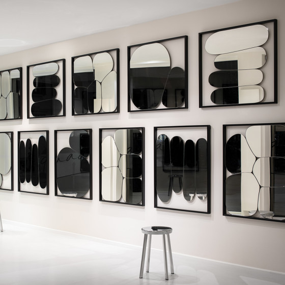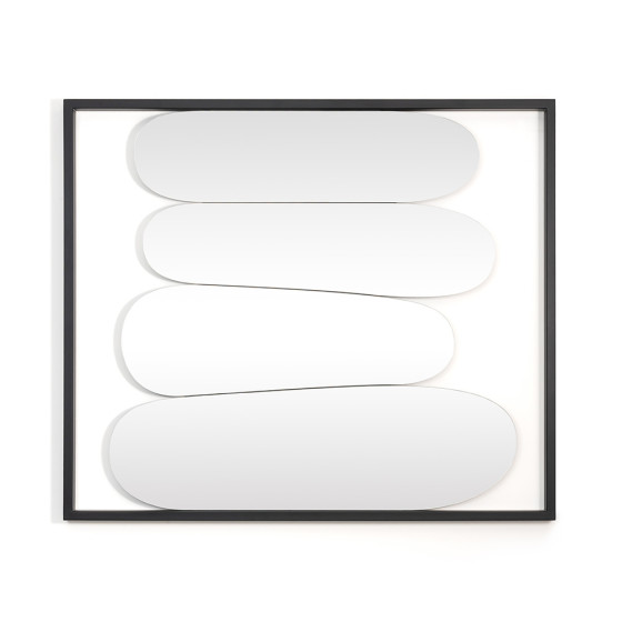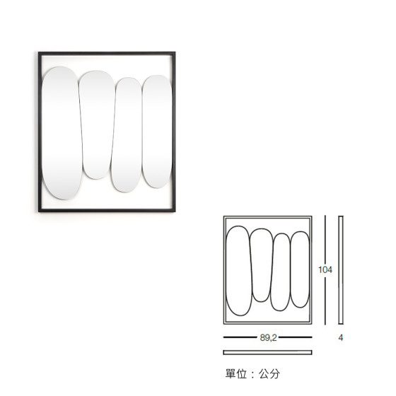 《Morphed Mirror》系列正是這個探索的回應,沒有繁複結構,也不倚賴雕塑般的厚重,而是以最純粹、最簡潔的姿態,將柔軟的形體,凝固於平面與立體之間。有人看見擁抱的弧度、有人看見波浪的推進,也有人看見父母輕扣住孩子臂彎的溫柔,它不僅映照身影,更映照記憶與感受;搭配黑色金屬框收束力量,這件作品就像一個被定格的瞬間,看似靜止,卻在你靠近時,開始呼吸流動。