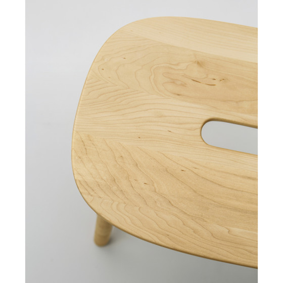 《T&O》系列以堅固木料製成,結合 Maruni 擅長的精密切割技術,打造出輕微彎曲的美麗曲面,並一改過去全木製家具的既定印象,巧妙結合單支鋼骨作為支撐,漆上黑、綠、紅等三種款式,畫龍點睛地讓色彩表現更具個性;在保有 Maruni 堅守的職人精神前提下,亦為居家及商業空間提供了豐富選擇。