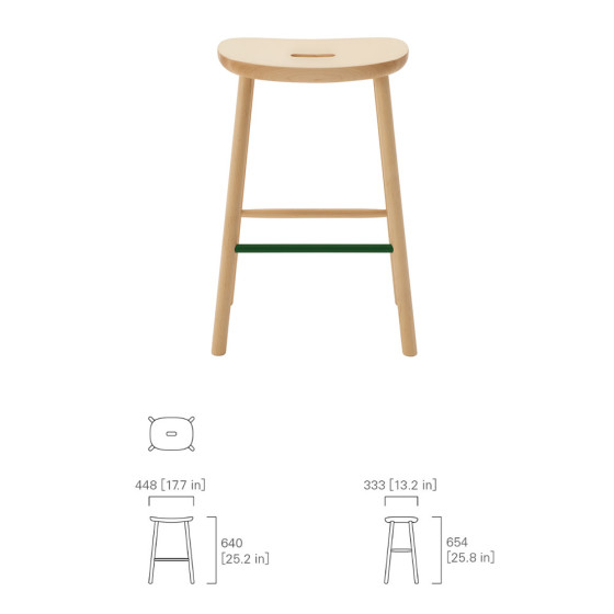 T&O O2 Stool Mid 中島凳(楓木、綠色鋼腳)