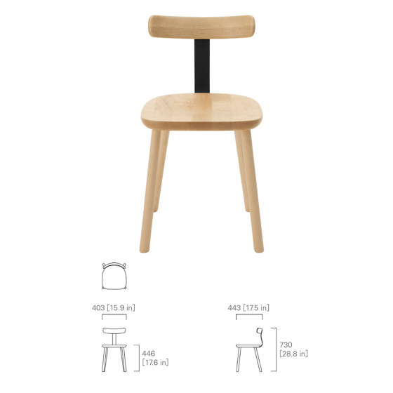 材質:楓木實木 C-0(透明聚氨酯塗裝處理)、粉末塗層鋼
