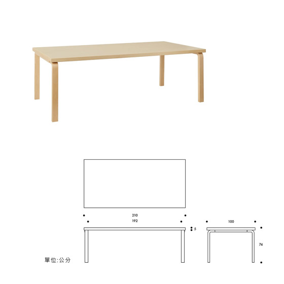 Aalto Table 86 矩形桌(原木色桌面、210 x 100 公分)