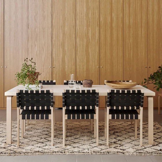設計於 1933 年,由 Alvar Aalto 所創作的 Table 86 桌,能夠作為 6 至 8 人的工作桌或餐桌使用。材質採用芬蘭樺木製成,展現自然溫潤質地。而桌面則提供原色樺木、易於清潔保養的層壓板、及具有舒適觸感,適合書寫的黑色油氈桌面等選擇。