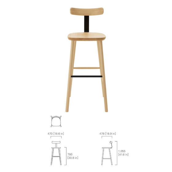T&O T3 Bar Stool High 高腳椅(楓木、黑色鋼腳)
