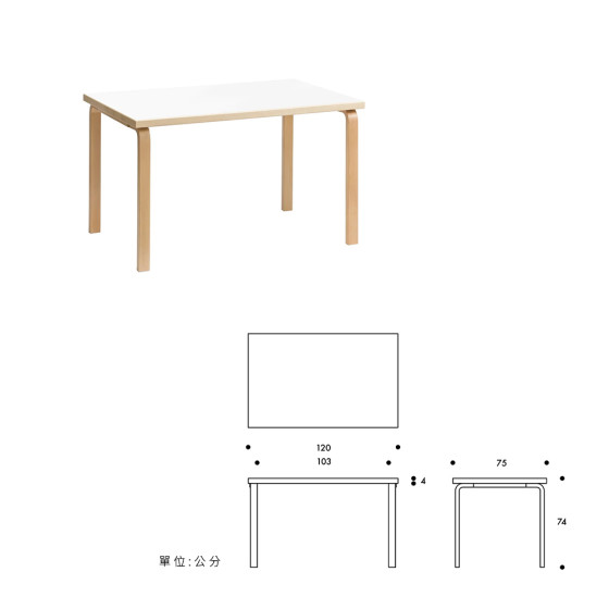 Aalto Table 81B 矩形桌(白色桌面、120 x 75 公分)