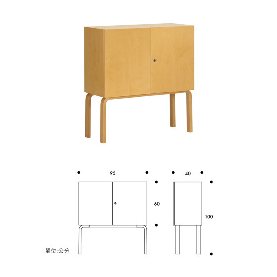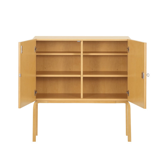 Cabinet 250 也被稱為雞尾酒櫃,此作品是 Alvar 與 Artek 共同創辦人及妻子 Aino 於 1930 年代所共同開發的優雅設計之一。因採用了 L 型曲木椅腳而被劃歸於 Alvar 名下 ,但這件家具其實深具 Aino 的設計精神,根據檔案資料顯示,她是第一位將櫃體結合 L 型曲木椅腳的人。