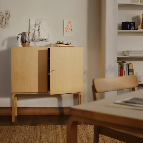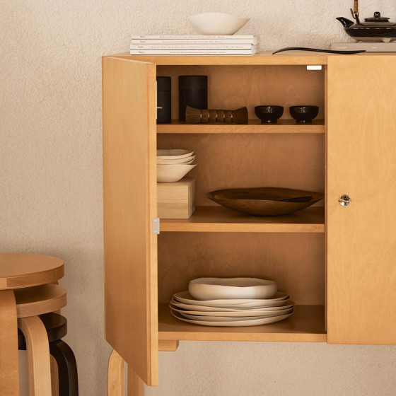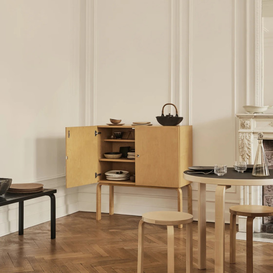 Cabinet 250 的外觀低調雅緻,能成為客廳及餐廳中的視覺焦點。它不僅能收納餐具茶飲,營造歡慶的待客氛圍;其精巧尺寸與均衡的內部儲物空間,也便於收納寢具、衣物等日常用品,完美呼應的 Aino Aalto 的設計理念 — 沒有任何物件或功能不值得被賦予美感。