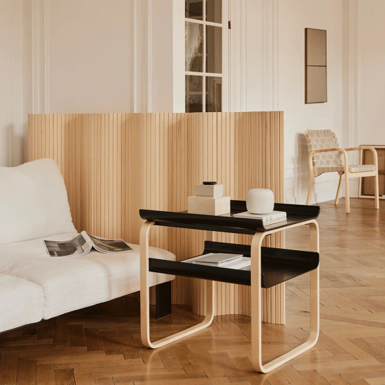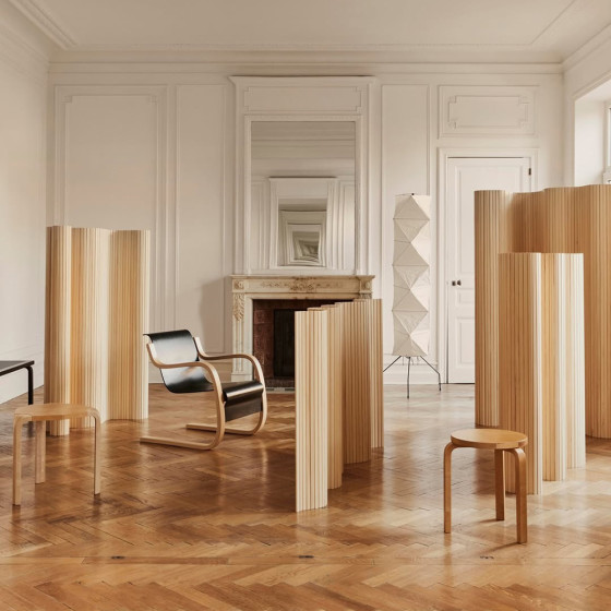 為歡慶 Artek 90 週年,品牌特別於 2025 年將檔案中的經典作品以嶄新面貌重現,在保留原始設計靈魂的同時,更採用可持續發展木材與革新工藝,延續其永恆魅力。將深受喜愛且歷久不衰的 Screen 100 屏風系列,推出三種新高度選擇,除了原有的 150 公分(100B)外,分別為 100 公分(100D)、130 公分(100C)與 180 公分(100A), 以滿足當代室內空間的多樣需求。