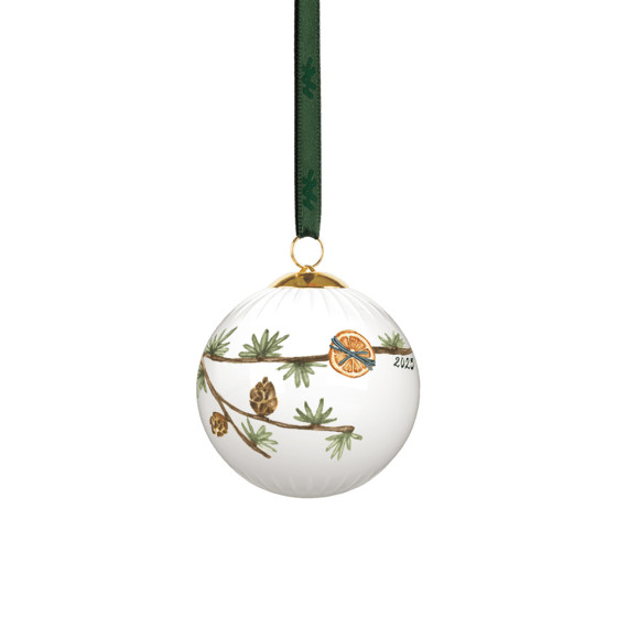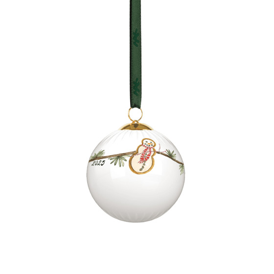 今年《Hammershøi Christmas》系列的聖誕圖騰雪球吊飾,以細膩的水彩筆觸生動描繪出雪松枝葉、落葉松球為主題,點綴上細膩的節慶小物——綁著藍絲帶的橙片、一朵精緻的小蘑菇,以及兩個手作薑餅造型的角色:雪人與聖誕毛衣,為節日注入溫暖的氛圍,球飾上也印有 2025 年份的字樣。