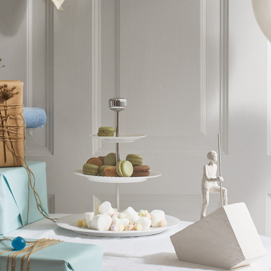 《Hammershøi》Etagere 下午茶點心架的三層設計精緻優雅,不論是擺放蛋糕、水果、起司或冷盤,都能瞬間提升餐桌的精緻感與視覺層次,讓每一道餐點都更具觀賞性與儀式感。
