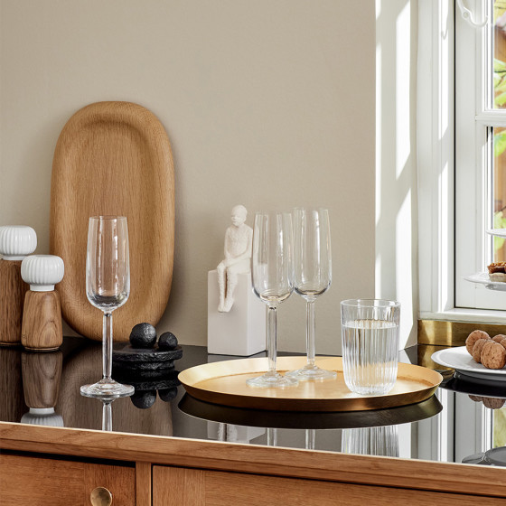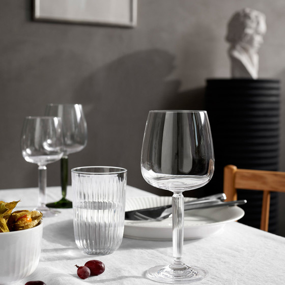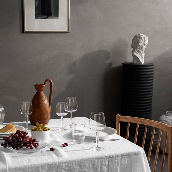 Hammershøi 水杯延續《Hammershøi》系列經典的輪花設計,呈現了典雅的杯身輪廓。當你握住杯身啜飲時,便能感受到 Kähler 驕傲的工藝傳承,杯身重量適中、比例均衡,而標誌性的輪花設計也提供良好的握感,無論日常使用或節慶場合都十分合適。