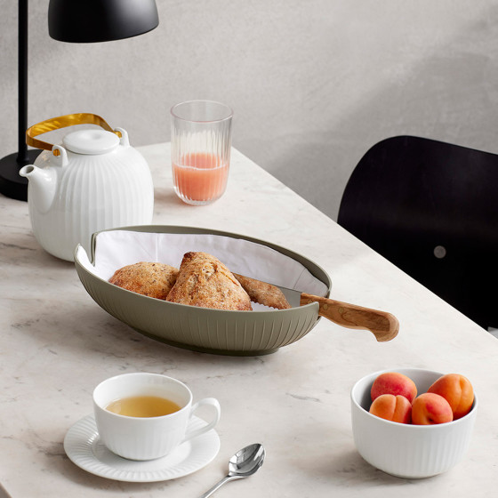 《Hammershøi》系列的設計發想來自藝術家 Svend Hammershøi,為 19 世紀丹麥重要畫家及陶藝家,於 1893 年開始參與 Kähler 的商品設計,推出多款輪廓鮮明、線條強烈的陶藝作品。當代設計師 Hans-Christian Bauer 以此為靈感,將其標誌性的古典紋飾,融合當代設計語彙,轉化為柔和手感的輪花刻紋,2015 年上市推出,便成為最成功的系列之一。