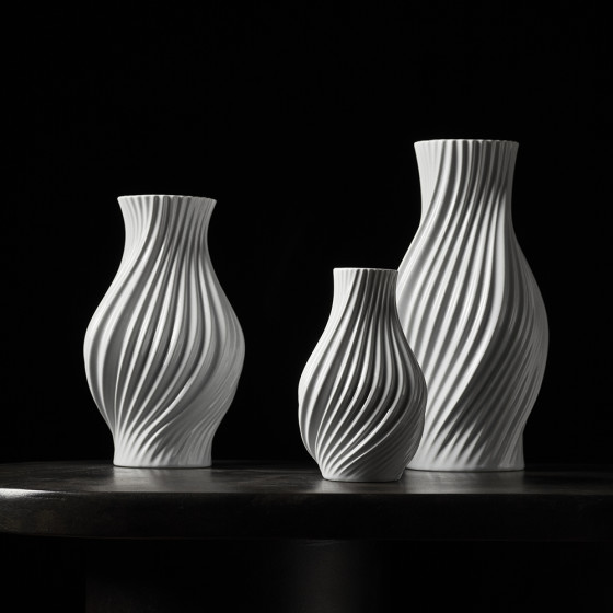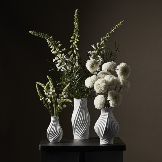 Twist 白瓷花瓶為 Lyngby Porcelæn 所開啟的全新篇章,其靈感取自自然界中的有機形態,如樹皮紋理、螺旋星系軌跡、彎曲花莖,以及古老地層樣貌,透過細膩扭轉的線條,展現出陶瓷工藝的當代新美學。