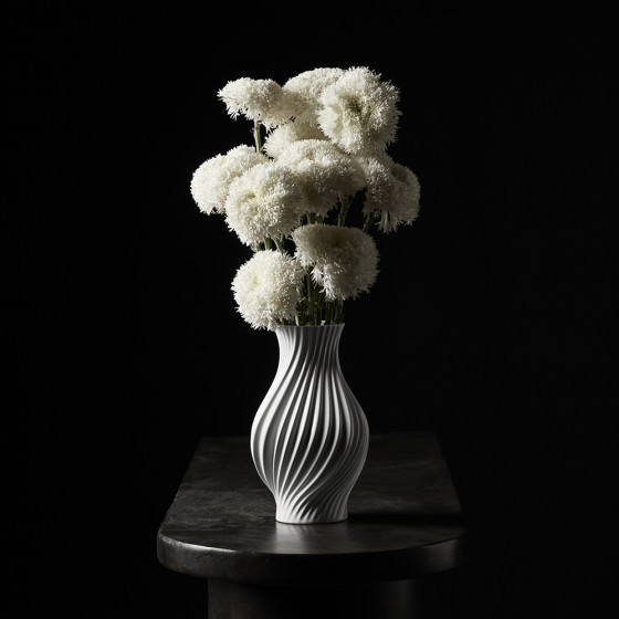 Twist 白瓷花瓶為 Lyngby Porcelæn 所開啟的全新篇章,其靈感取自自然界中的有機形態,如樹皮紋理、螺旋星系軌跡、彎曲花莖,以及古老地層樣貌,透過細膩扭轉的線條,展現出陶瓷工藝的當代新美學。