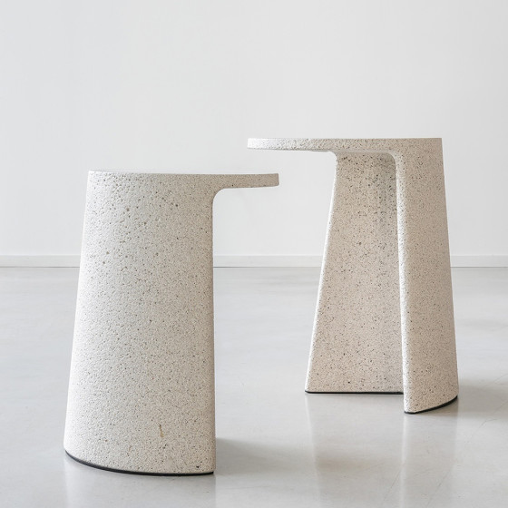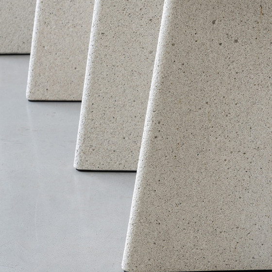 《Ancora》系列以「混凝土建築」為核心理念,Ronan Bouroullec 將整個系列視為一個「混凝土建築計畫」,強調結構的力量與比例的純粹。系列每張桌子都似一座縮小版建築體,外觀厚重,卻透過結構線條,創造出輕盈氛圍。