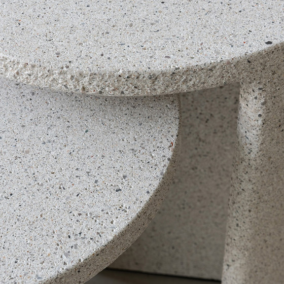 Ronan Bouroullec 的設計靈感源自建築師 Pier Luigi Nervi 與設計師 Angelo Mangiarotti,向他們對傳統義大利建築的精神致敬。無論長桌或矮桌,拋光混凝土表面皆能於光線下展現細微變化,粗曠與細膩並存的質感,是《Ancora》的精神特質;全系列呈現出「家族式設計」,富有整體感,不論置於居家、商業空間或甚至戶外,既能單獨成為主角,成組搭配亦十分合適。