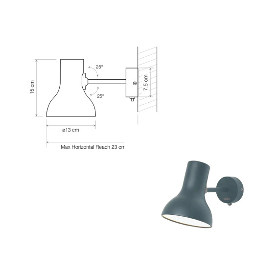 《Type 75 Mini》壁燈以精巧、低調且富設計感的外型,為室內帶來靈動而優雅的光線。鋁製燈罩與支臂、霧面烤漆塗層和簡潔壁掛底座,使其輕巧不占空間,能自然融入各種居家風格。只需調整燈罩角度,光束即可精準落在所需位置——床邊閱讀、沙發旁小夜燈、書桌或玄關角落,它都能靈活應對,提供溫柔而實用的照明。雖然是 Mini 尺寸,卻完整承襲 Kenneth Grange 打造的《Type 75》經典美學與功能精神,對於小坪數、狹長或角落空間中重視質感與光線層次的人而言,這盞壁燈是理想之選!