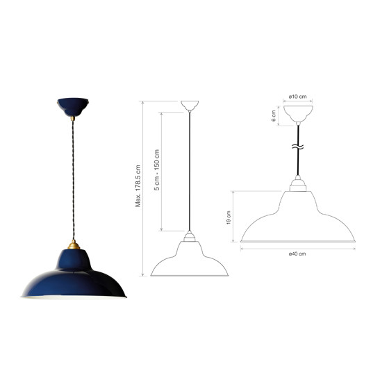 Original 1227 Midi Wide 吊燈(黃銅、墨水藍、220V)