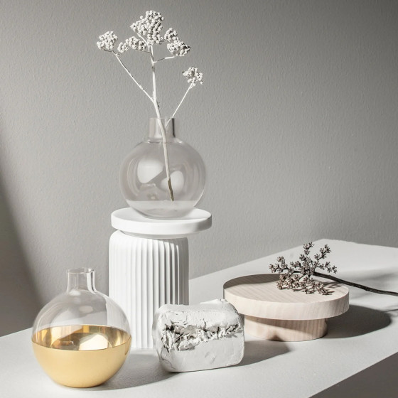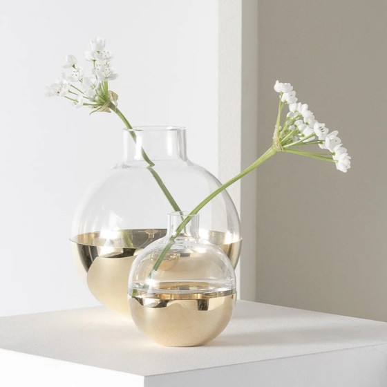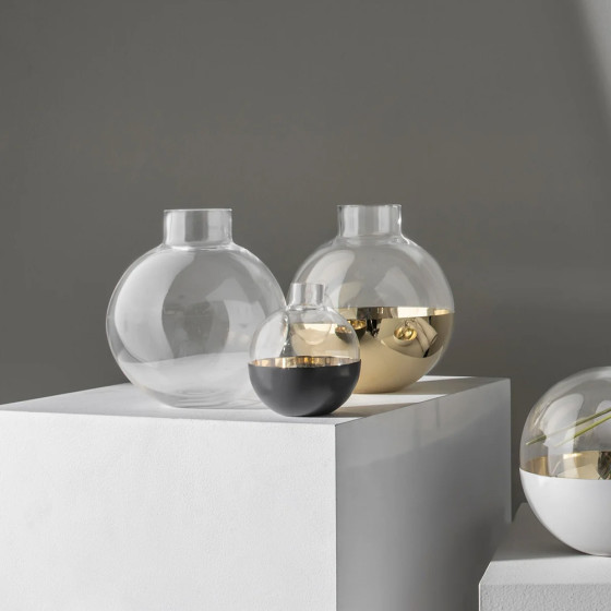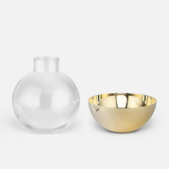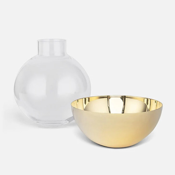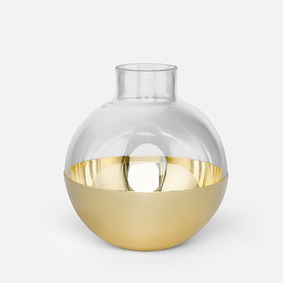 Pomme 這個名字來自法語中的「蘋果」,借用它自然優美的有機形式,打造出圓潤球形外觀,玻璃瓶身與黃銅底座並可分開使用,瓶身可做為切花花器,而底座則可作為燭台運用,巧妙的靈活設計,適於家中不同角落。