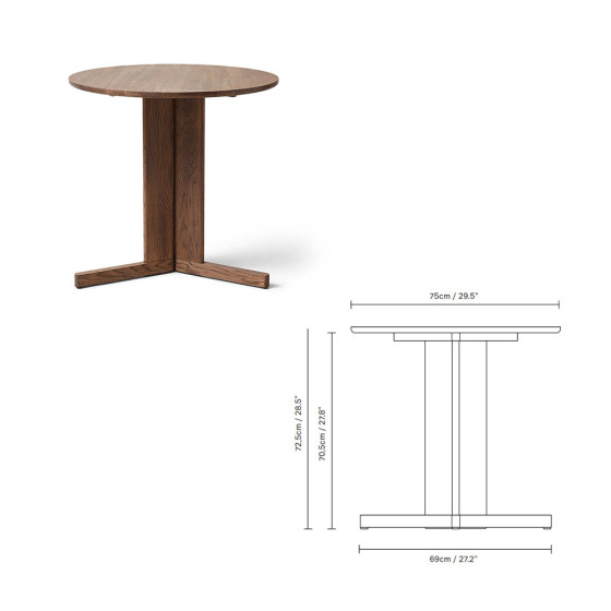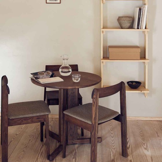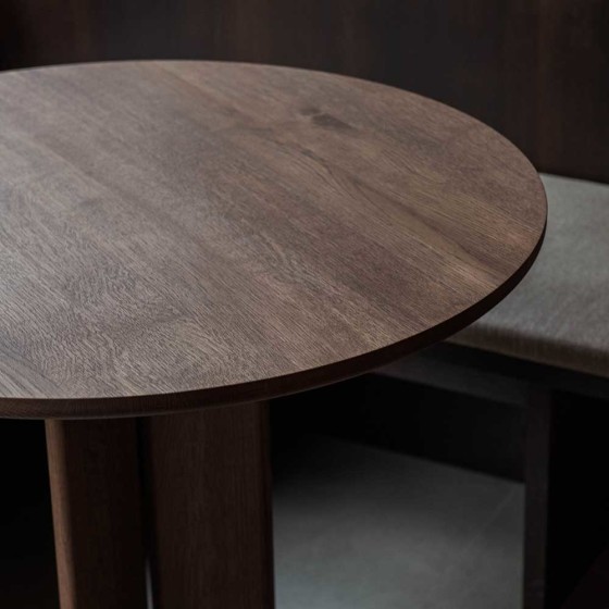 《Trefoil》由三支桌腳支撐起整體結構,桌腳細緻而堅固,替圓桌增添輕盈感及獨特視覺氛圍,桌下空間亦大幅增加,令使用者擁有更為輕鬆舒適的乘坐體驗。其外觀造型簡約而俐落,輔搭實心橡木美麗的天然紋理,能自然融入各式空間,擺置於居家、辦公室、咖啡館或餐廳皆十分合適。