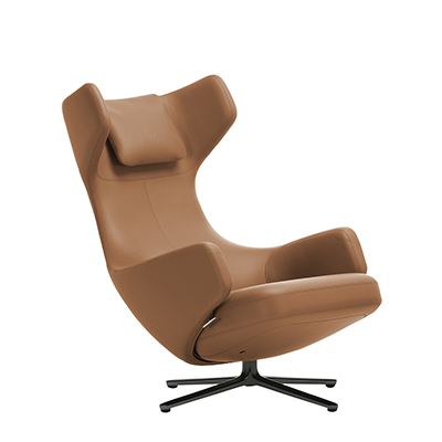 Grand Repos 休憩主人椅(駝棕色皮革、深黑色基座)
