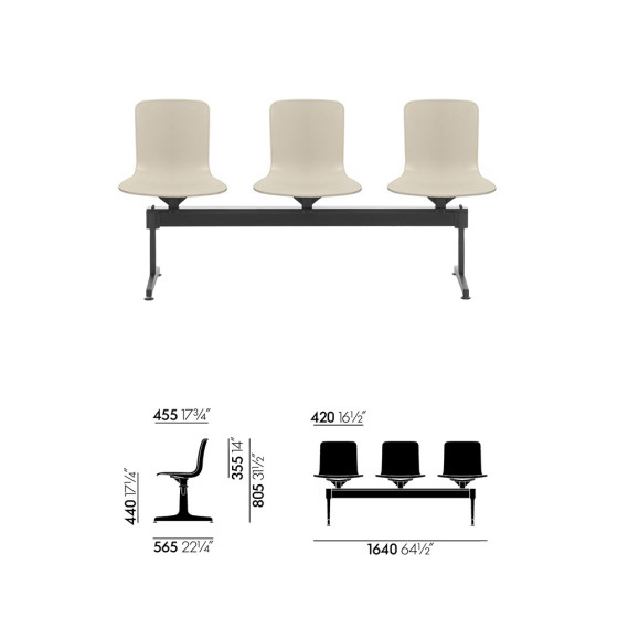 HAL RE Beam 三人座公共椅(暖灰)