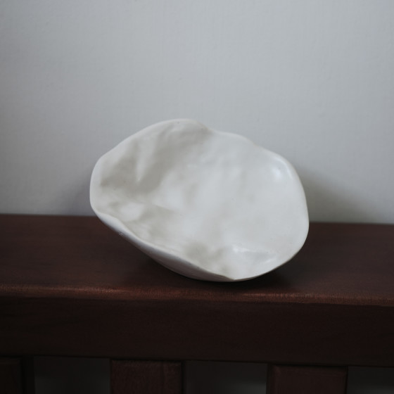 這款擺皂碟以陶瓷打造,並以霧面質感呈現,精心的工藝讓每處細節充滿了自然的韻味。表面小巧的洞孔仿佛貝殼上的細微痕跡,細膩地勾勒它的獨特之處。而此款擺皂碟的設計更是考究,不規則的凹凸與角度經過精心計算,以確保它能穩穩地承托住鵝卵石皂。