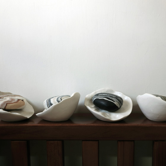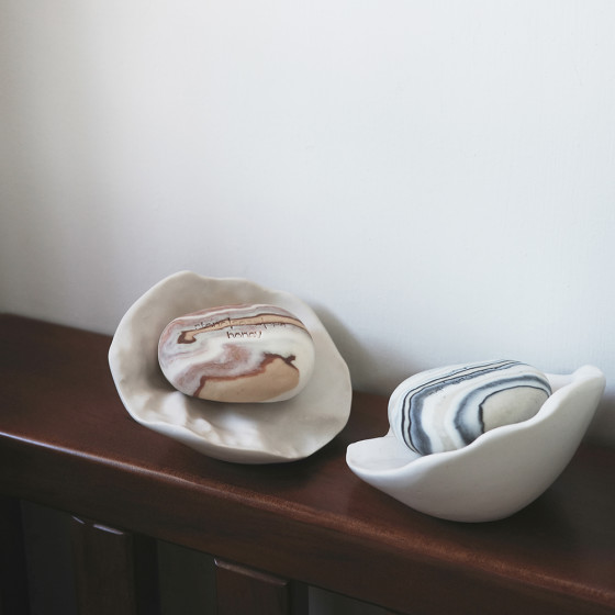 在挪威 Oslo Design Fair 上,Stone Soap Spa 的創辦人 Kjetil 與陶瓷藝術家 Anna Dypsjø Egan 相遇。兩人都深受大自然的啟發,而 Kjetil 在得知這點後,決心邀請 Anna 為 Stone Soap Spa 創作一款專屬的擺皂碟,美好的機緣就此展開。