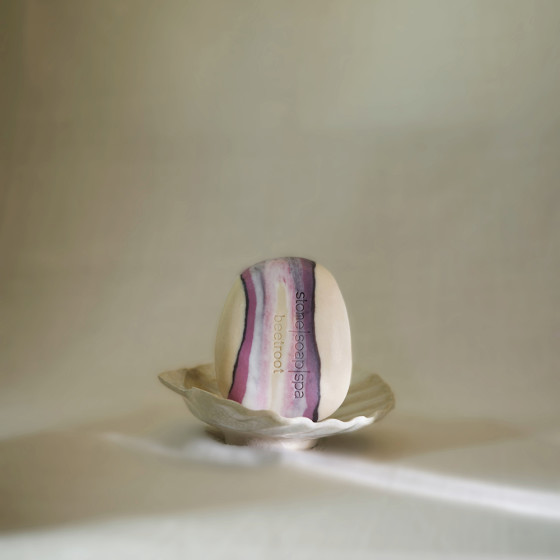 每一顆鵝卵石磨砂皂,皆不倚賴模具,全程以雙手塑形,由品牌皂藝師以掌心反覆揉塑,使外型自然圓潤,貼合手感,也讓香氣得以恰如其分地釋放只為呈現最純淨自然的色澤與質感。這門工藝仰賴時間、直覺與對草本原料的深刻理解,確保每一塊肥皂在外型、觸感、起泡性與潔淨力之間,皆達到理想平衡。