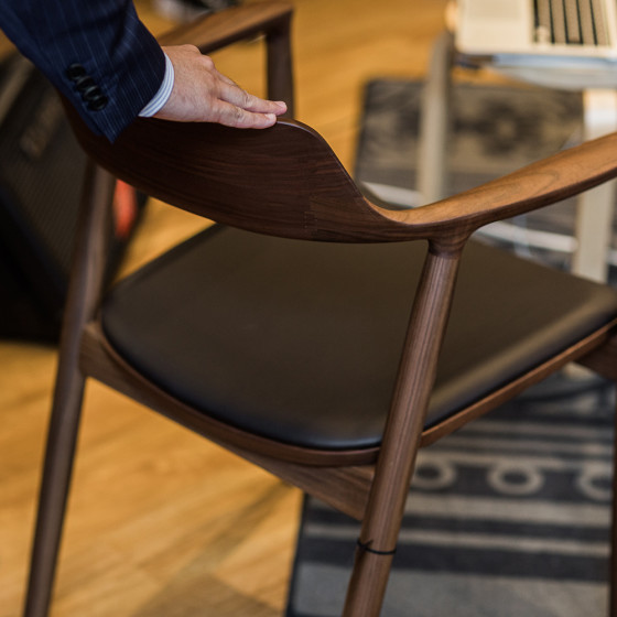 maruni 對木工吹毛求疵幾近偏執的做法,在某些木作愛好者眼裡或許表現得太過精準,但如果是追求設計物件必要完美極致的買家,就相當合適入手。坐上淺笑般微彎,鋪陳頂級皮革軟墊的椅座,枕上經過精密計算,符合人體的傾斜椅背,最後雙臂再搭上絲滑膩潤,輕柔包覆的扶手,體驗最講究細節的日本人打造的,無微不至的北歐風格工藝作品。