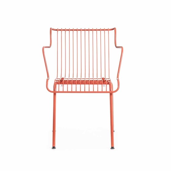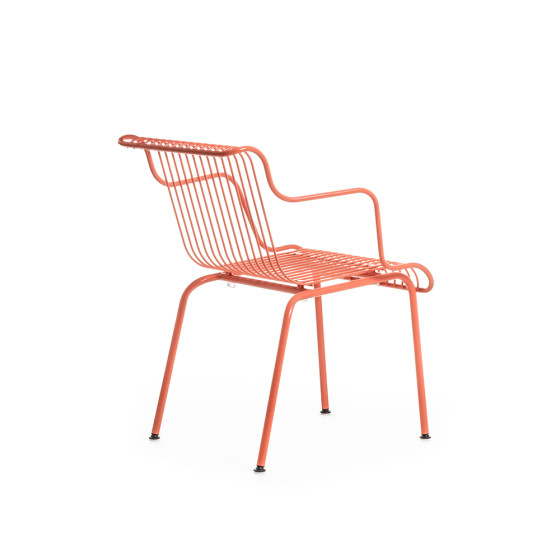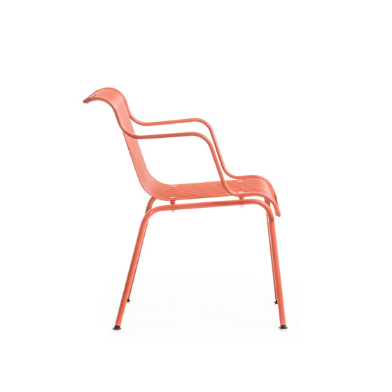 同時針對戶外較容易凹凸不平的地面,在椅腳及桌腳部分,也特別附有調節腳墊,可因應地面起伏隨時調整,提供使用者舒適體驗;而它其實也是非常適於室內使用的桌椅系列,不同於一般對金屬家具的冷硬想像,輕鬆展現出一派悠閒的型態風格。
