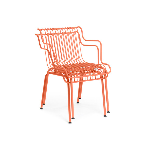 South 系列是專為戶外使用所打造的桌椅系列,從中可看見設計師 Konstantin Grcic 所具備的高敏銳性,結合建築設計的嚴謹精神,以及對科技材料所投入的熱情研究。他將剛硬金屬材質彎曲,勾勒出迷人動態線條,不僅貼合人體舒適曲線,視覺上也自然營造出輕盈的流動感受。