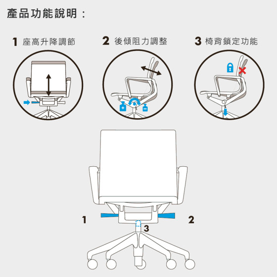 1. 椅身可 360 度旋轉