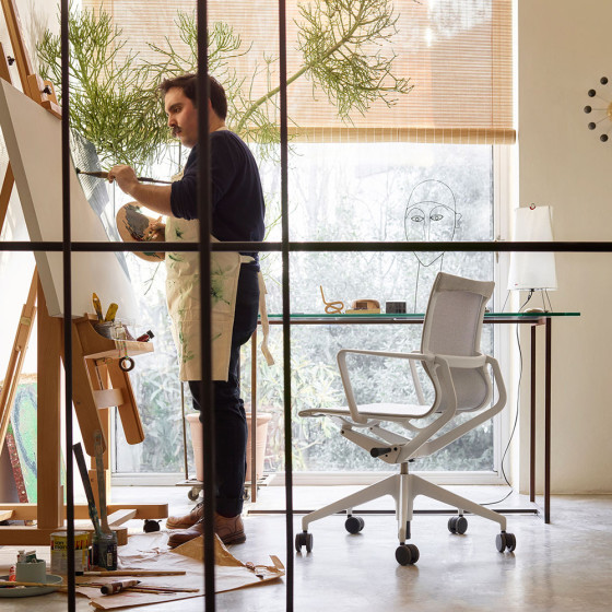 為了創造出全新的工作椅體驗,Vitra 邀請機械工程底子深厚的義大利設計師 Alberto Meda 來合作,採用最先進的材料和頂尖的生產技術設備,研發出三種 Vitra Office 的獨家要素:靈活美型的框架與結構體、透氣彈性的科技纖維表布、穩定耐久的機械作用裝置。