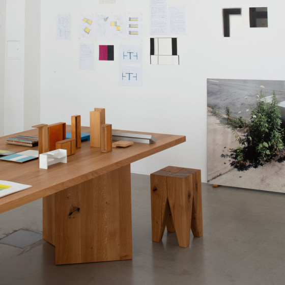 Kaname 桌以歐洲實心橡木製成,獨特的樞軸式桌腳在視覺上顯得輕盈,卻提供穩定而扎實的支撐,展現設計師對比例與平衡的細膩掌握。桌面提供圓形、橢圓形與矩形三種形式,能靈活融入不同尺度與場域需求;天然實心橡木、巧克力棕色與深棕色染色木料,細緻呈現木材原有的紋理層次,為這款雋永設計增添沉穩而優雅的氣質。