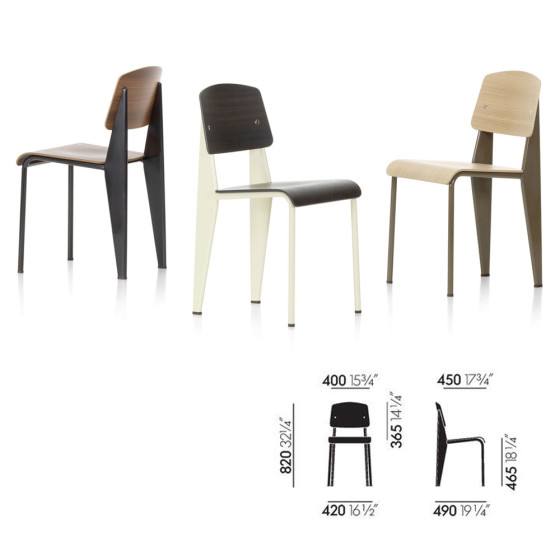 Jean Prouvé 一直認為自己更像是工程師和建設者,而不是現代設計師。他從不單純為了外型而設計,而是專注於結構、材料及工藝技術的本質。 Jean Prouvé 致力於最具結構性及最高材質使用效率的設計,其經典作品如 1934 年的現代設計標準椅 Standard chair 和 1954 年的 Antony Chair。利用他創新的折疊金屬板技法,Jean Prouvé 設計了一系列桌子,融入建築概念的作品,使整體具有輕巧的結構骨幹。家居設計作品則涵蓋了各式各樣的物件,從開信刀到門窗配件,從照明和家具等等,一切適合工業生產的物件,都是他揮灑設計的範疇。Vitra 與 Prouvé 家族密切合作下,於 2002 年開始發行這位偉大的法國建築師的設計作品。