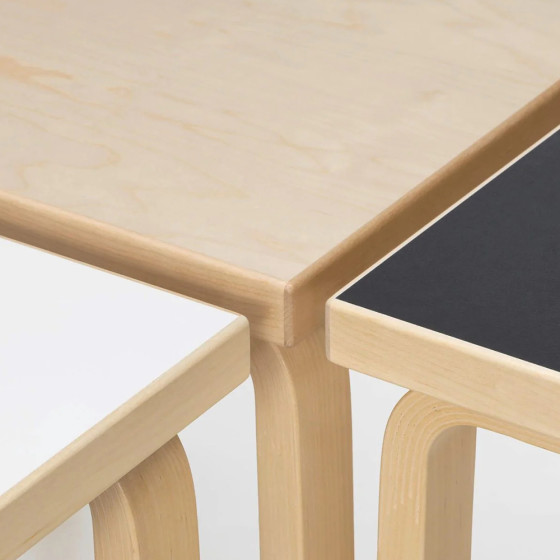 熱愛自然素材的 Alvar Aalto,每一件家具作品幾乎都以芬蘭盛產的白樺木作為主要選材,對他而言,木料呈現出的天然紋理及溫暖色澤,是製作傢俱不可多得的絕佳材料。在當年,已嘗試製作許多曲木傢俱的他,希望能製作一張方便輕巧的長桌,讓傢俱在日常的使用及習慣上,能有更多彈性與機能。