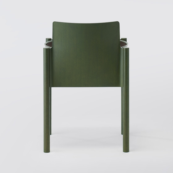 Kawara Armchair 的迷人之處,在於運用模壓膠合板塑造出立體弧形的椅背與扶手。透過精準成型工藝,讓背部與手部支撐呈現自然流暢的三維曲線,兼具視覺輕盈與實際包覆感。